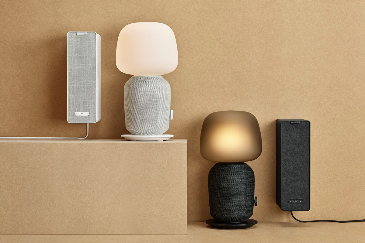 「SYMFONISK/シンフォニスク テーブルランプWiFiスピーカー付き」(電球は別売)は、スピーカーとランプが一体になっており、インテリアに自然と溶け込むデザインになっています。ガラスのランプシェードは、熟練した職人による吹きガラスで、ひとつずつ異なる仕上がりが製品の個性になっています。価格は1万4990円。