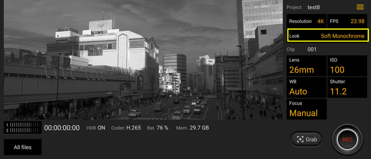 Cinema Proでは撮影した映像クリップをグループ単位で「Project」としてまとめてアプリの中で管理します。はじめに新規プロジェクトを作成して、その中に次々とクリップを作成していくようなイメージです。Lookはプロジェクト単位で固定になりますが、ISO感度やホワイトバランス、レンズの選択などはクリップ単位で変更できます。