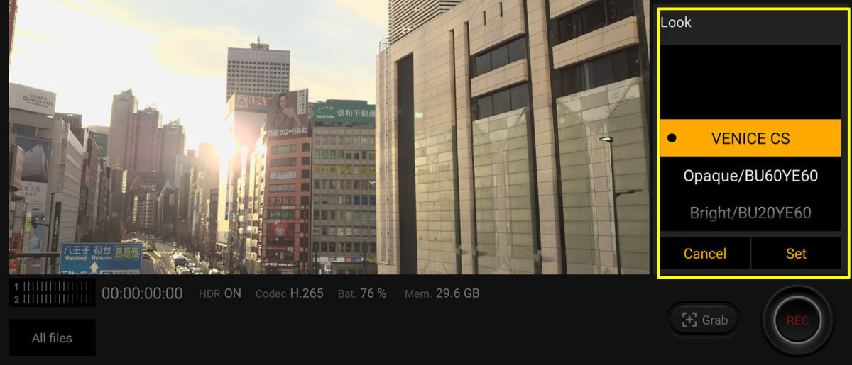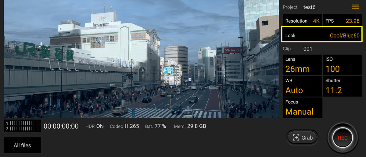 そしてCinema Proには「Look(ルックアップテーブル)」という色あい/明るさのプリセットが用意されています。好みのLookを選んで、映画のような雰囲気のある画づくりが簡単にできます。
