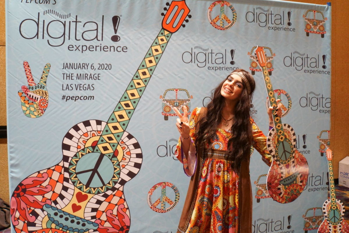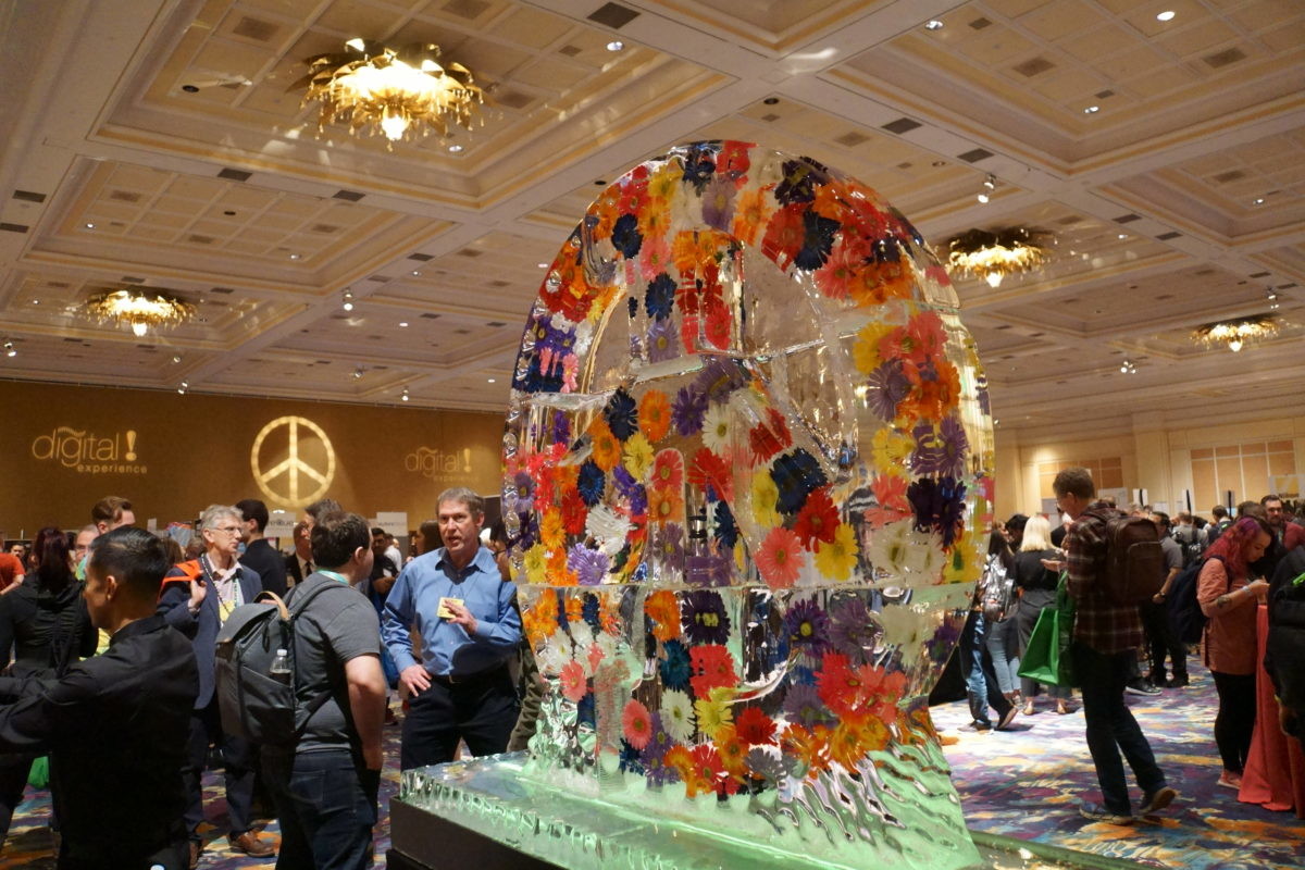 Digital Experienceは、言わばデジタル製品の文化祭のようなもの。毎年テーマが決まっていて、会場はそれ一色に染まるのだそうです。今回のテーマは60年代のヒッピーでしょうか。1969年に行われた音楽フェス「ウッドストック・フェスティバル」を彷彿とさせるスタイルに、筆者はノックアウトされてしまいました。入り口ではピースマークのペンダントが配られ、ドラッグに見間違うようなラムネもいただきました。ちなみに、過去には夏のビーチ、海賊などのテーマで開催されていたそうです。