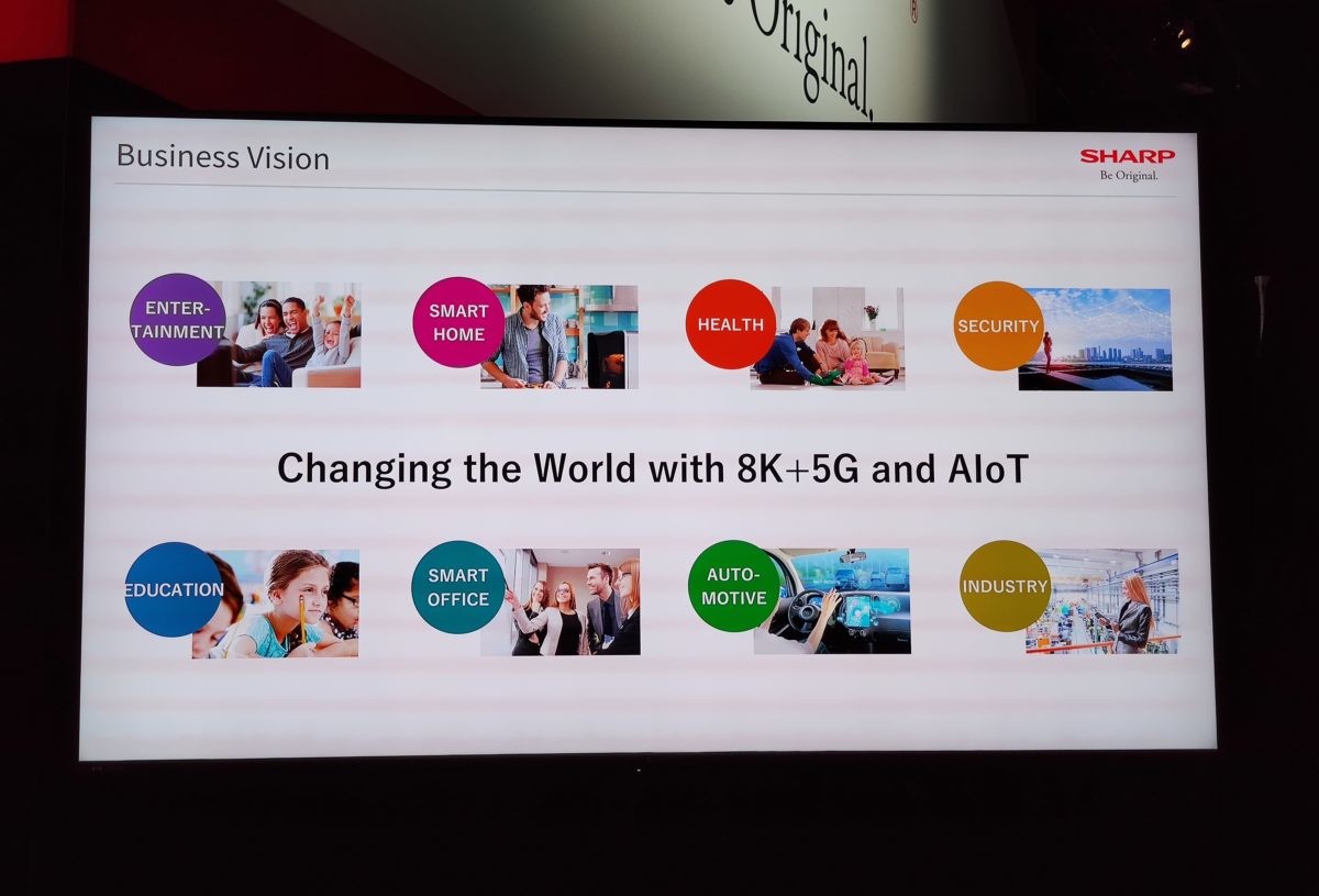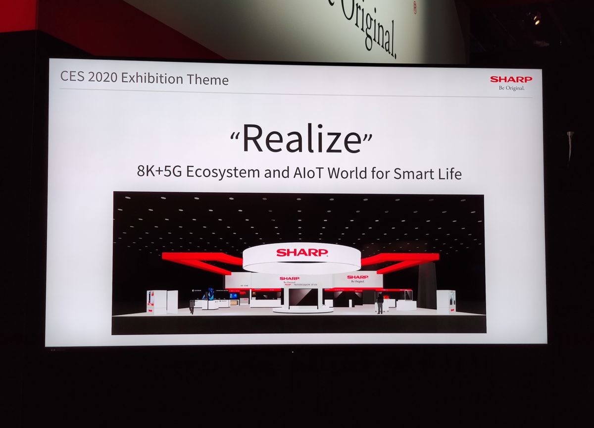 CES 2020の開幕初日にはプレスカンファレンスを開催し、取締役 副社長執行委員 ICTグループ長の石田佳久氏が登壇。2020年のビジネス戦略を明らかにしました。そこで掲げられたキーワードは「8K」「5G」「AIoT」。主に8つの事業分野(産業、セキュリティ、スマートオフィス、エンターテインメント、健康、自動車、教育、スマートホーム)に注力することをアピールし、2020年のテーマは「Realize(実現)」であると語っていました。昨年のCES 2019でのテーマは「8KとALoTで世界を変える」だったので、そこに「5G」が加わった形です。