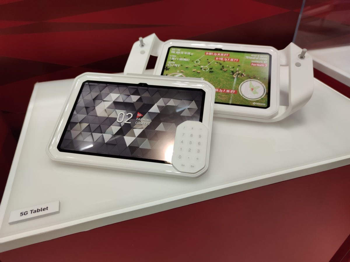 CESに初めて出展したという京セラのブースには「5G Solutions」というコーナーが設けられていました。そこに展示されていたのは、堅牢性と耐久性をセールスポイントとする5Gスマートフォン・タブレットのプロトタイプ。2020年内に米国での発売を予定しているそうです。