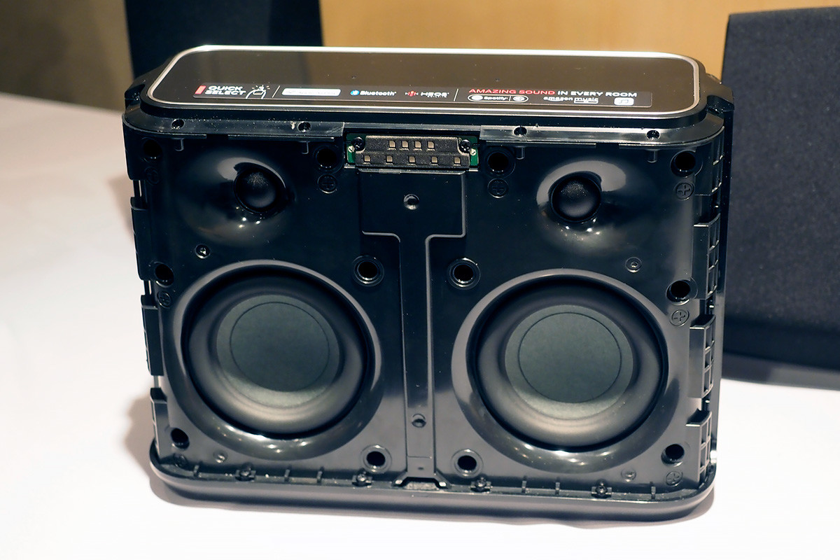同社は以前からHEOSブランドでワイヤレススピーカーを発売していました。それが何故DENONブランドになったのかといえば高音質を追求するためだとか。HEOSブランドはワールドワイドな展開で、その先進機能を強調する近未来的なデザインが採用されていました。それが今回、オーディオメーカーとして音の良さを前面に出すことが決まり、スピーカーのデザインが根本から見直されています。その結果、エンクロージャ−も音質優先の素材と形状になり、ドライバーも専用設計になりました。