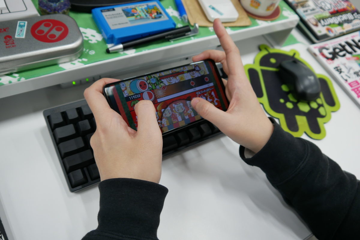 続いて、気になる本体の熱問題ですが、インタビューの中では「リズムゲームならば1曲は最後まで遊べるか」「バトルロワイヤル系シューティングゲームだったら1バトルできるか」と言っていましたが、大抵リズムゲームの曲は1曲2分前後なので、4~5曲連続プレイしても、プレイ中に端末の熱さが気になることはありませんでした。