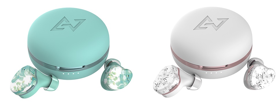 イヤホン女子100人以上の声をもとに開発されたガーリーなデザインの完全ワイヤレスイヤホン。その日の気分やファッションに合わせて、2種類のフェイスプレートを付け替えることができます。イヤホンをつけたまま、周囲の音を聴くことができる外音取り込み機能(アンビエントマイク)を搭載。突然の雨でも安心なIPX5相当の防水性能を備えています。充電ケースの内側にはミラー付き。カラーはピンク、ミントグリーン、スノーホワイトの3色。