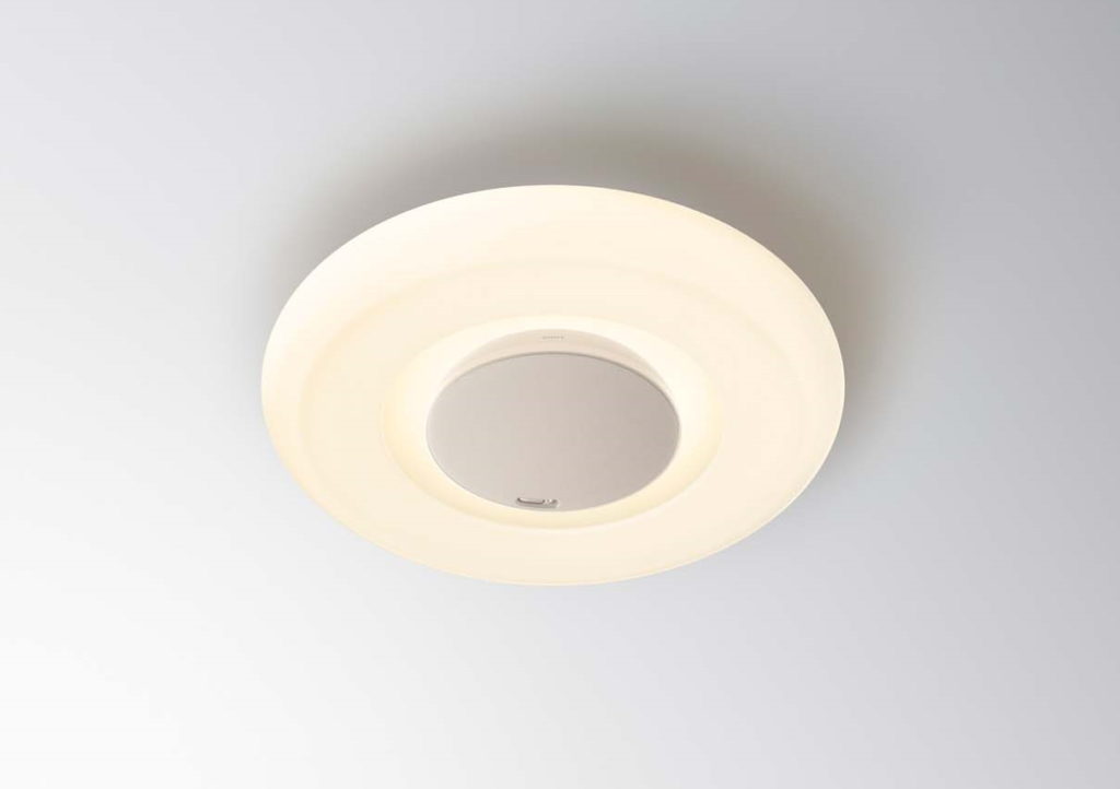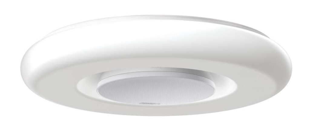 SPEC●ライト適用畳数:10畳相当●スピーカー実用最大出力:約5W●スピーカー:Φ46mm(フルレンジ)●通信規格:IEEE802.11 b/g/n、Bluetooth5.0(SBC、AAC、aptX LL)●サイズ/質量:Φ520×H111mm/約3.1kg