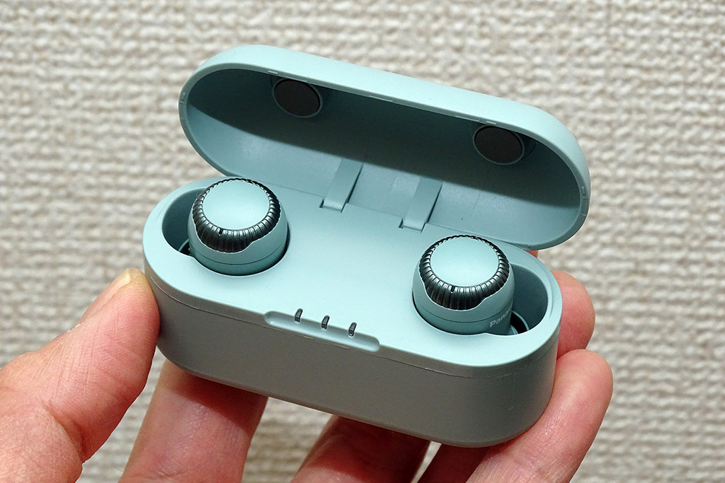 イヤホンとケースがとにかくとてもコンパクト。イヤホンは装着した時に耳元のグリップ感が安定するので、体を動かすスポーツシーンでも使いやすかった。小さなイヤホン全般に言えることだが、ケースからの着脱時の落下には注意を払いたい。