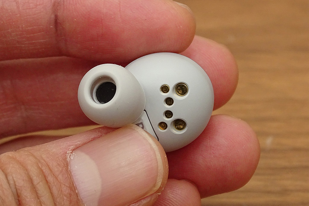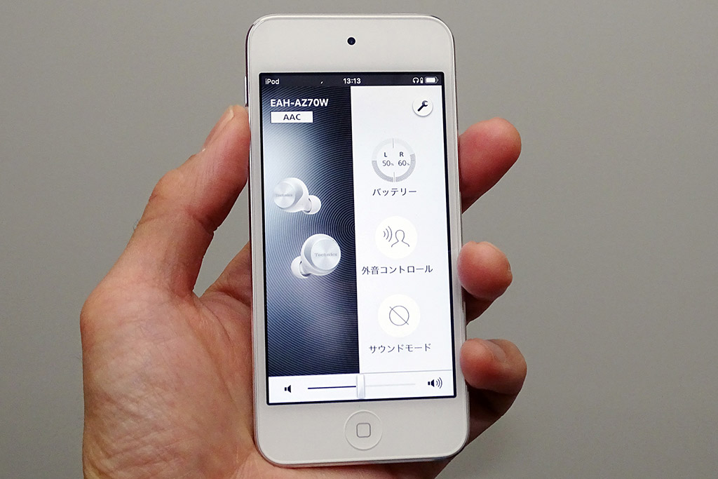 タッチセンサーの動作が俊敏。タッチエリアが広く操作にストレスがない。外音取り込み機能はマイク由来のノイズ感も丁寧に抑えられている。接続モードに「音質優先」を選んでも目立った音切れもなかった。