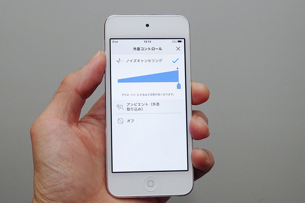 ANC機能の消音効果は抜群。特に人の話し声の帯域を驚くほどきれいに消してくれる。テクニクスのイヤホンと同様に、アプリからANCと外音取り込みの強弱を細かく調整できる。ANCの設定値をいくつか登録してリモコンから切り替えられるようになれば、なお嬉しい。
