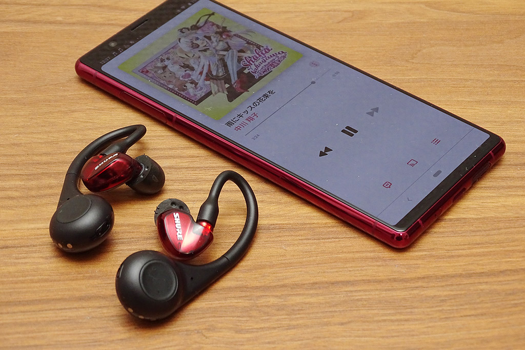 イヤホンをSE 215に戻してから、スマホはiPhone 11 ProとXperia 5を切り換えながら、Xperiaの側は音声コーデックをAACに固定して同じ楽曲を再生してみるとプレーヤーによる音質の違いも浮き彫りになってきます。気が付けばAONIC 215による“聴き比べ”に見事にハマってしまいました。