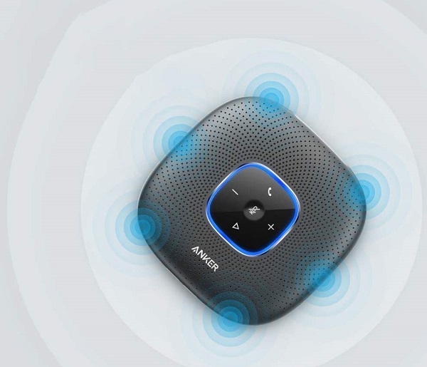Bluetoothによるワイヤレス接続とUSBケーブルによる有線接続の両方に対応した、会議や複数でのオンラインチャットに最適なマイク付きスピーカー。6つの全指向性マイクを360度に配置することにより、全方向から声を漏れなく集めます。スピーカーとの距離や声の大きさに関係なく、一定の音量で相手方へ声を送る「オートゲインコントロール」機能のほか、クリアな音声通話を実現する「エコーキャンセリング」「ノイズリダクション」などの高音質化機能も備えています。本体にバッテリーを備えており、最大約24時間の連続使用が可能。