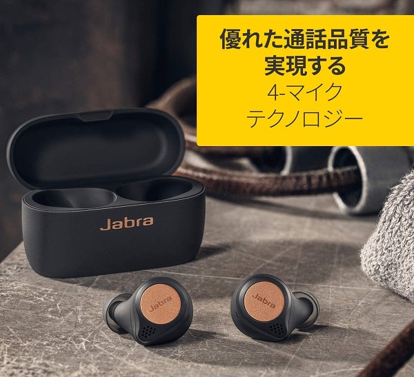 スポーツにも使えるIP57相当の高い防水・防塵性能を備えた完全ワイヤレスイヤホン。Jabraは業務用のヘッドセットの開発で長い実績があり、ワイヤレスオーディオの通話品質の高さにも定評があります。このElite Active 75tは、周囲のノイズや風切り音などを軽減するアルゴリズムと、複数のマイクで声を拾う「4マイク通話テクノロジー」により、高品質な音声通話を実現しています。イヤホンを装着したまま周囲の音を聴ける「HearThrough」(ヒアスルー)機能も搭載。
