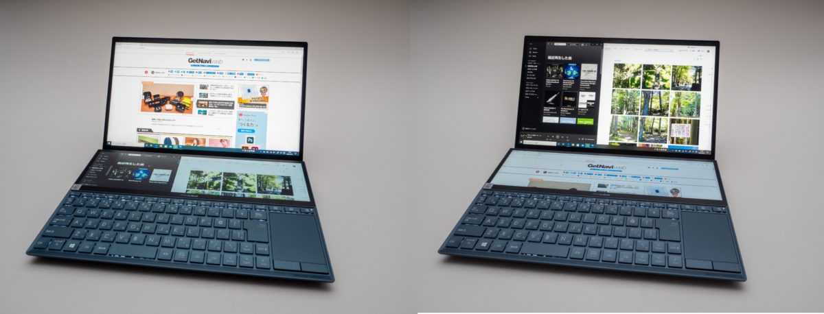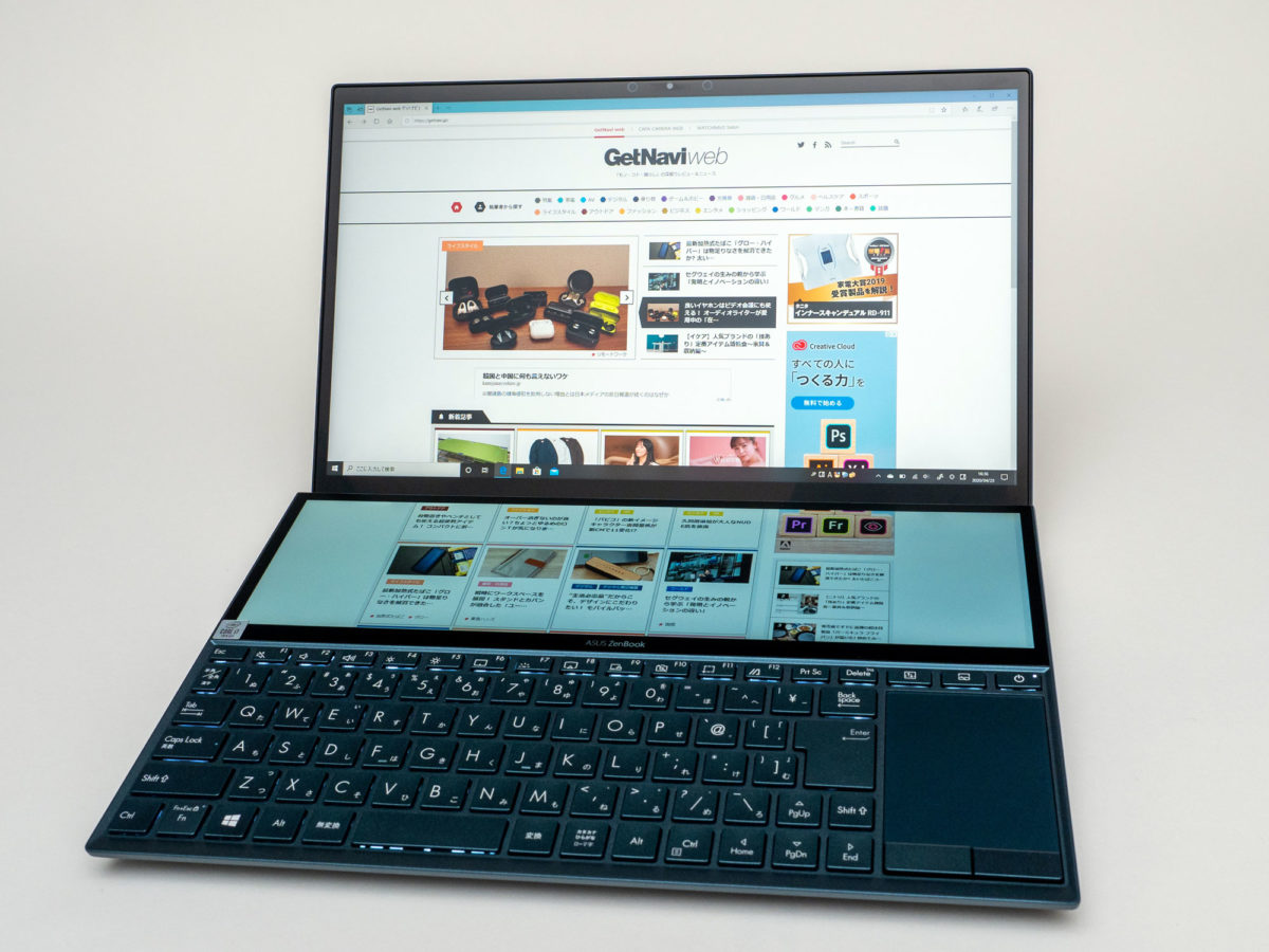 約1週間試用してみて分かったのは、本機が見た目の通り、かなり尖ったマシンであること。最大の特長であるデュアルディスプレイの使い勝手はかなり良く、フォトレタッチや動画編集など、とにかく多くのウィンドウやパネルを展開せねばならない作業では絶大な威力を発揮してくれました。オフィスワークでも、複数のアプリを切り換えて使う人には充分な恩恵を感じられるでしょう。