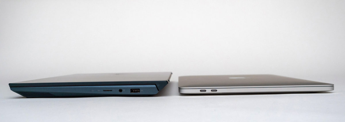 他に類を見ないデュアルディスプレイなど、見るからに個性的なZenBook Duoですが、その使い勝手はどうでしょうか? まず本体サイズですが、フットプリントこそ一般的なA4サイズノートPCですが、機能盛りだくさんということもあって本体はややぶ厚く、ズシリとくる重さがありました。それでも充分にモバイル可能なレベルだとは思いますが、少しでも軽量なマシンをという人には向いていないかもしれません。