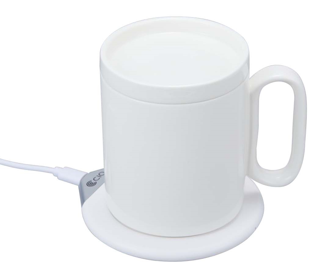 1台でカップウォーマーとQi規格のワイヤレス充電器の2役をこなします。コースター部に載せた専用マグカップに入れた飲み物を40~55℃に保てるほか、不使用時は最大10Wの充電が可能です。