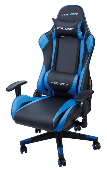 長時間着座するプロゲーマーのためのゲーミングチェア。柔らかいポリウレタンレザーや、頭と側面を支える3D形状を採用。各部の角度を調整して、ラクな姿勢で作業できます。