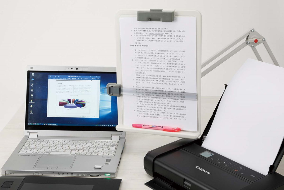 机上にスペースを確保できなくても、書類を確認しながら作業できます。大量のデータ入力作業などでも威力を発揮します。