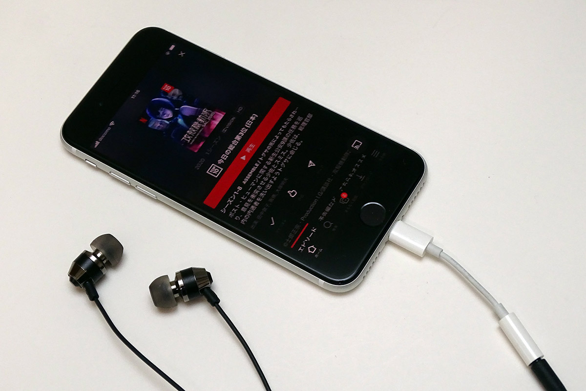 続いて、ピエール中野モデルのHSE-A1000PNをLightning-3.5mmヘッドフォンジャックアダプタを間に挟んで、最新の第2世代iPhone SEにつないでYouTubeやNetflixの動画もストリーミング再生してみました。“人の声”がとても明瞭に聞こえるイヤホンなので、動画やゲームを楽しむ用途にも向くモバイルイヤホンではないかと思います。