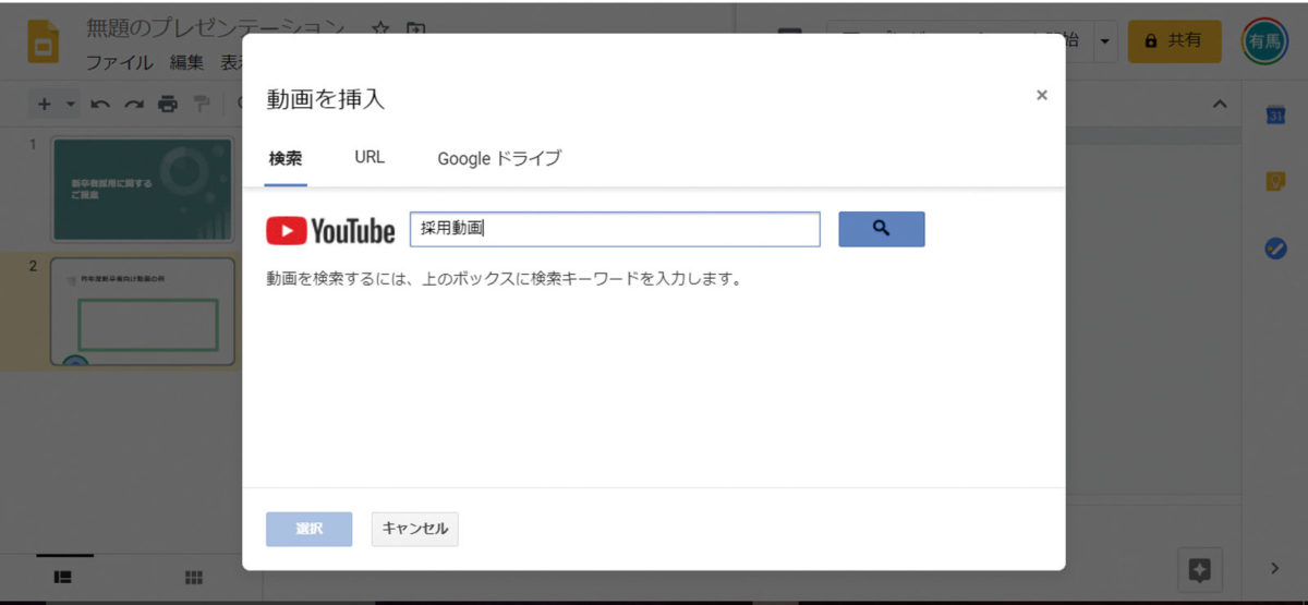 スライド内に動画を埋め込めば説得力が増しますが、重い動画はスマホに保存するのが難しい。そんなときに便利なのが、YouTubeとのリンク機能。YouTube上に必要な動画をアップロードしておき、その動画にリンクを張っておけば動画の自動再生ができます。