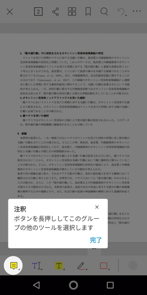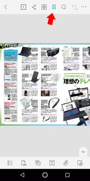 ページ数の多いPDF文書では、目的のページや大切なページを探すのもひと苦労。そんなとき、「しおり」をつけておけば画面上部のしおりアイコンが点灯することで判別でき、サムネイルからしおりのついたページを見つけることもできます。