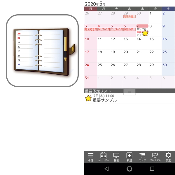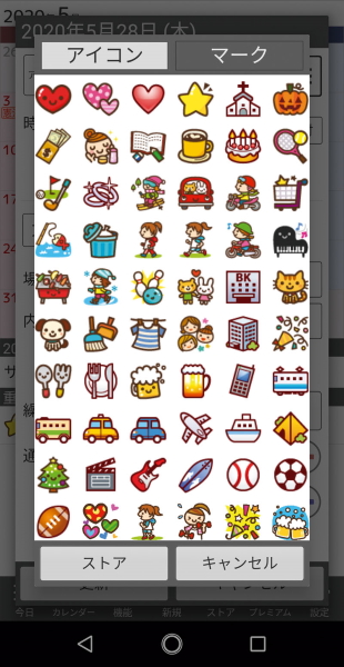 それぞれの予定にはアイコンを付加することができます。アイコンは月単位で表示しても確認しやすいため、予定の内容が読めない場合でも「どのジャンルの予定なのか」がひと目で把握できます。