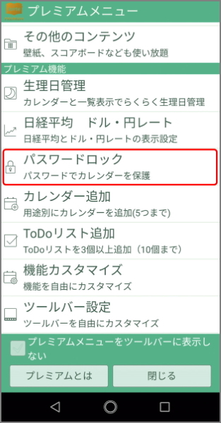 カレンダーごとにパスワードを設定することができます。機密性の高いプロジェクトのメンバーとスケジュール共有を行うときなどに使いましょう。
