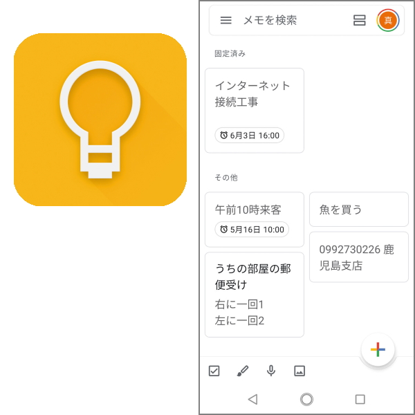 付箋のように画面内にメモを貼り付けていく方式のメモアプリ。それぞれのメモはラベルや色分けで整理できます。スマホのほか、PCアプリやブラウザ上からも利用可能。音声入力が可能なほか、手書きメモや写真の貼り付け、グループでのメモ共有などにも対応し、機能が豊富です。