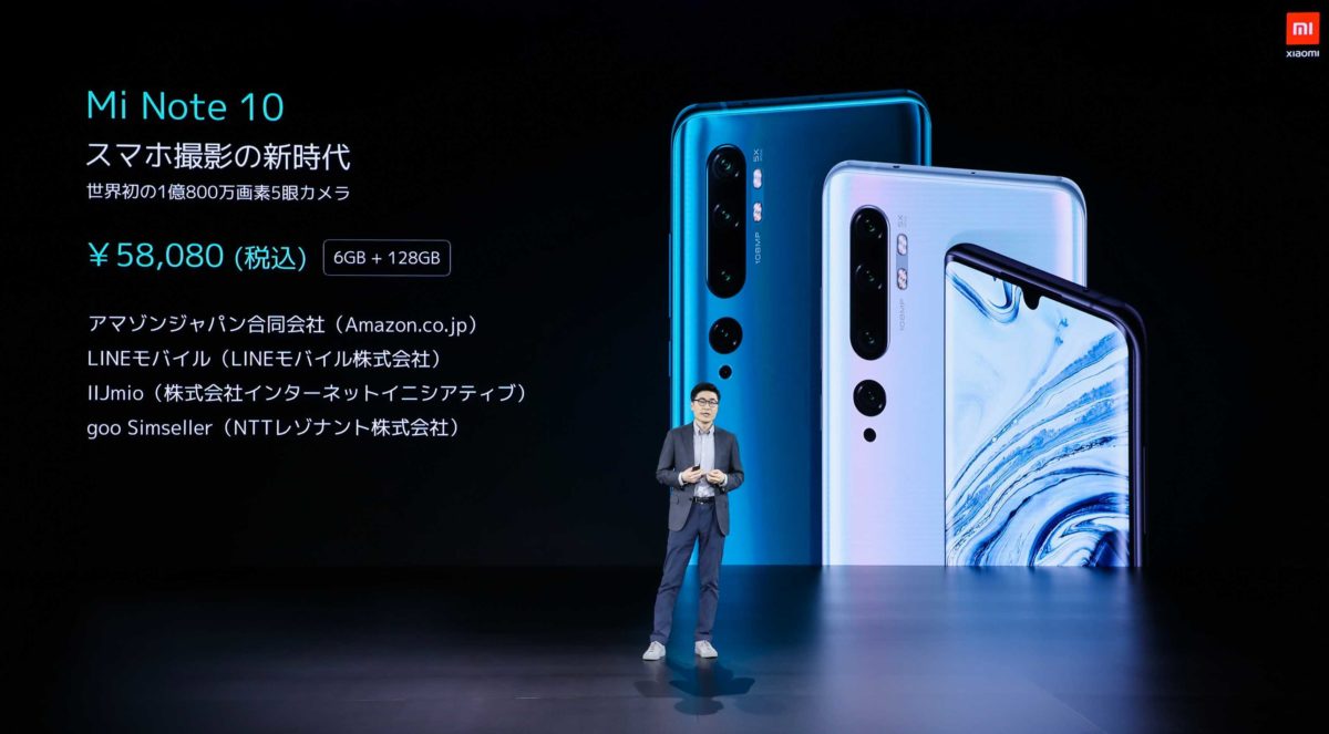 6400万画素メインの4眼カメラを搭載する「Mi Note 10 Lite」