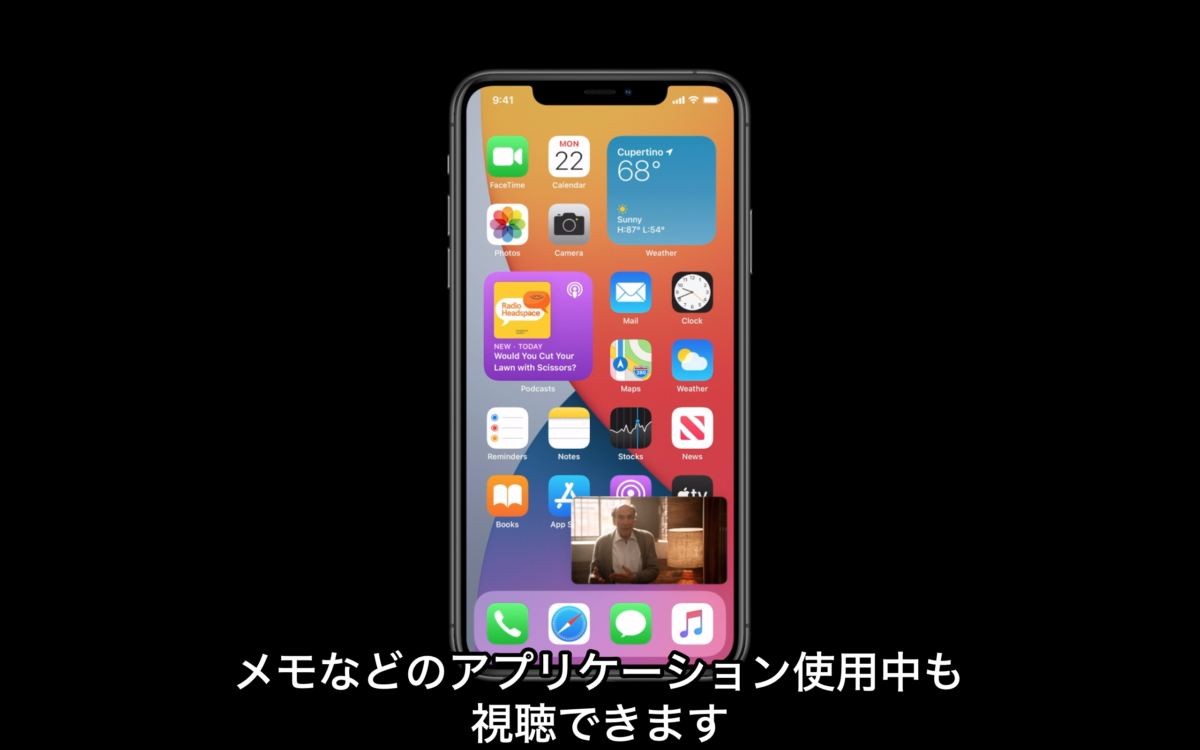 次に言及されたのが、ピクチャ・イン・ピクチャ。動画を見たりFacetimeを使用しながら、アプリが使えるようになる、というものです。