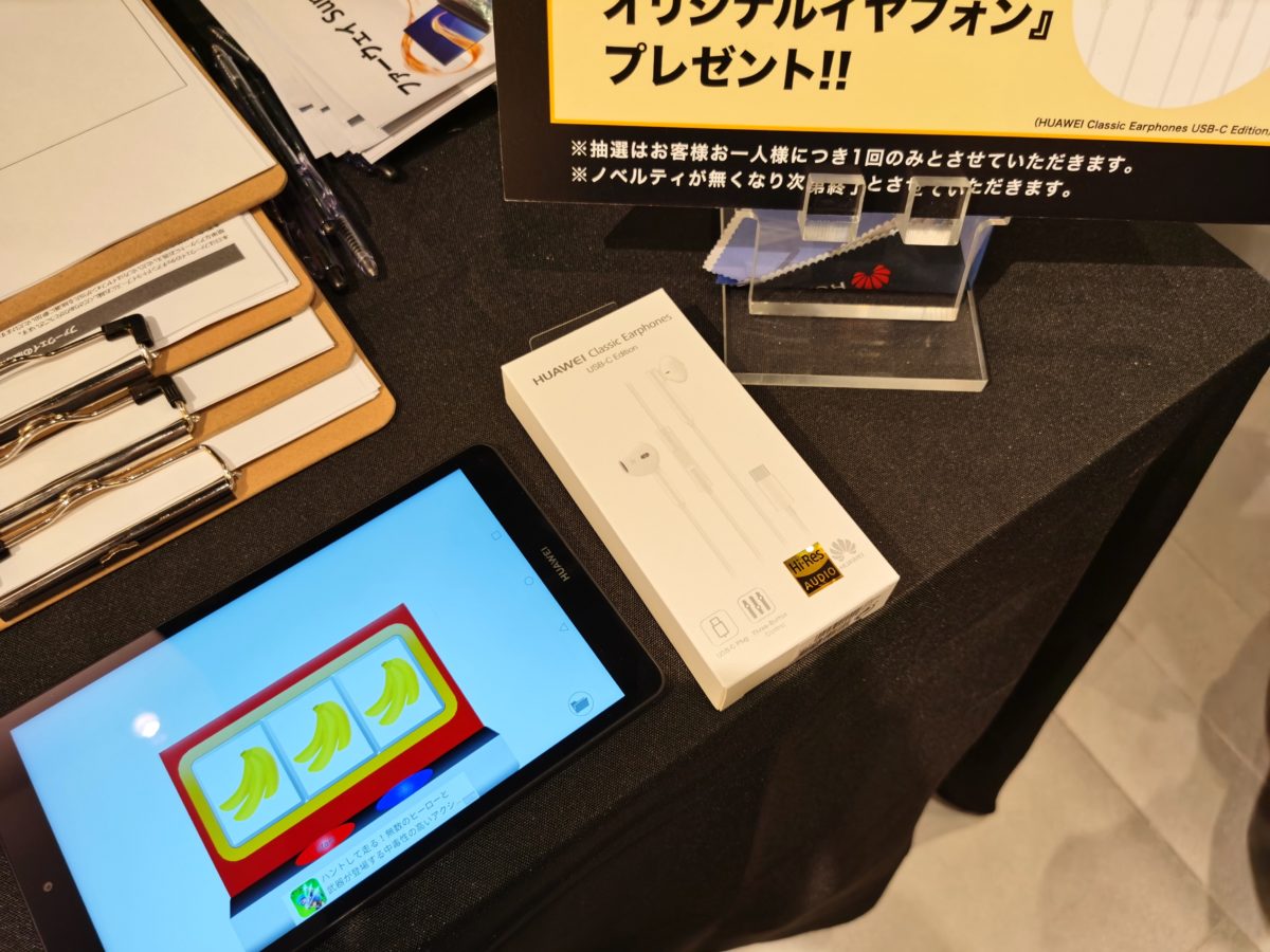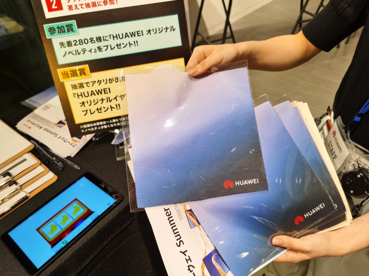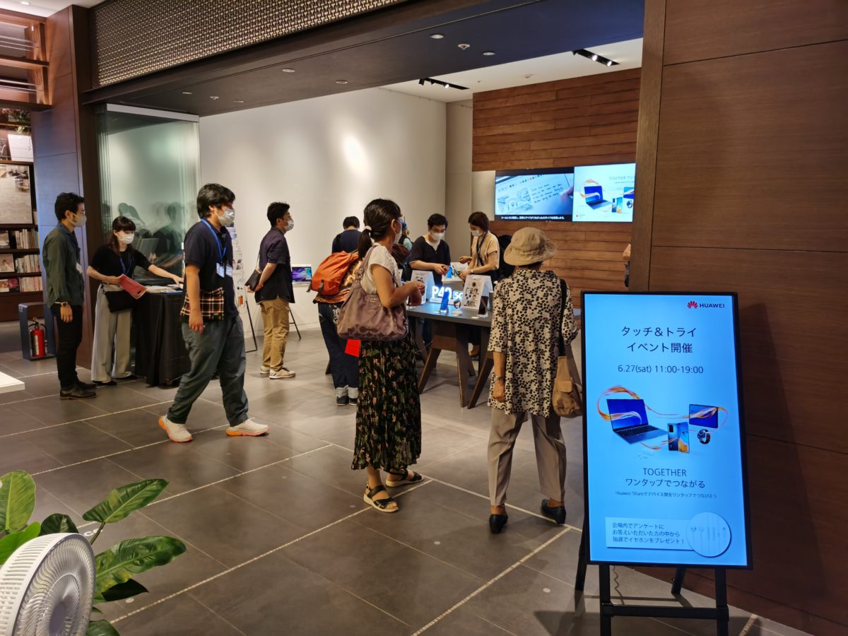 今回行われた1日限りのイベントでは、6月2日に発表された新製品を中心に、日本で買えるファーウェイの製品が勢揃い。来場者は実際に手に取って操作感を試すことができました。しかし、緊急事態宣言は解除されたとはいえ、まだコロナウイルスは終息しておらず、積極的に「来てね!」とはアピールできない状況の中での開催。来場者にはマスクの着用と手指消毒が求められていました。そんな状況にも関わらず、遠方から足を運んだファーウェイファンも多く、偶然見かけて立ち寄ったという来場者もいたようです。