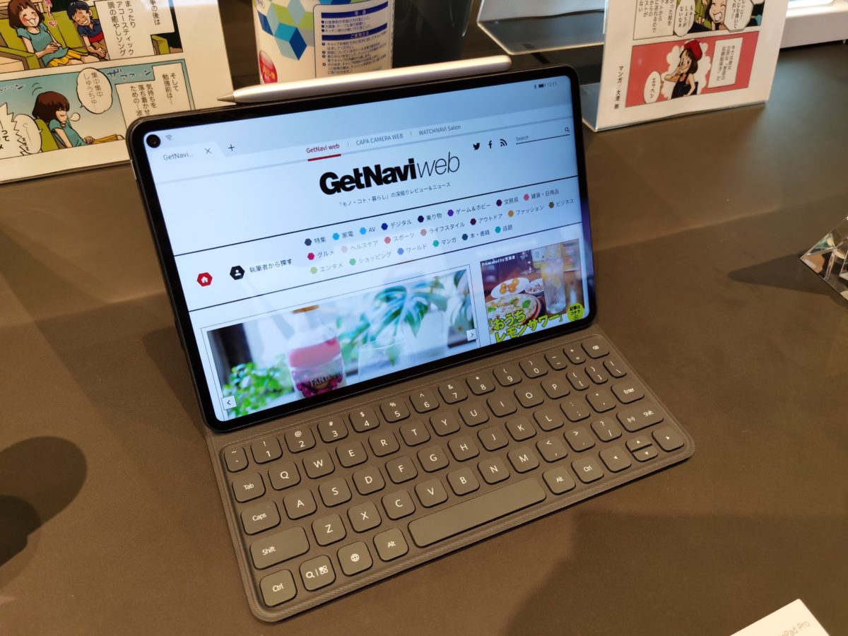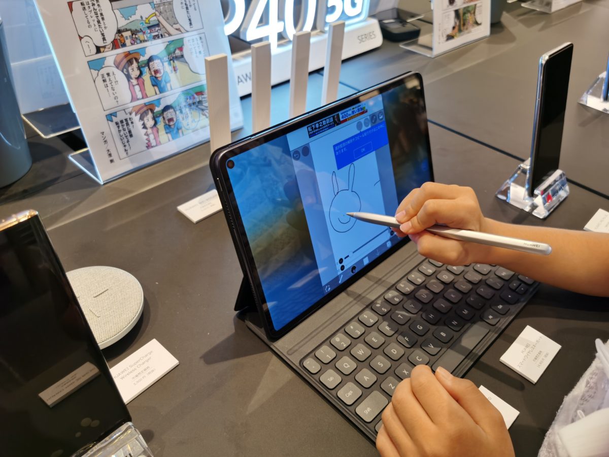 タブレットは、別売のキーボードを組み合わせることでノートPCのように使える「HUAWEI MatePad Pro」が注目を集めていました。約10.8インチのディスプレイを搭載する高性能タブレットで、4096段階の筆圧を感知する「HUAWEI M-Pencil」に対応していることもアドバンテージ。M-Pencilはワイヤレス充電対応で、タブレットにくっつけるだけで充電できます。