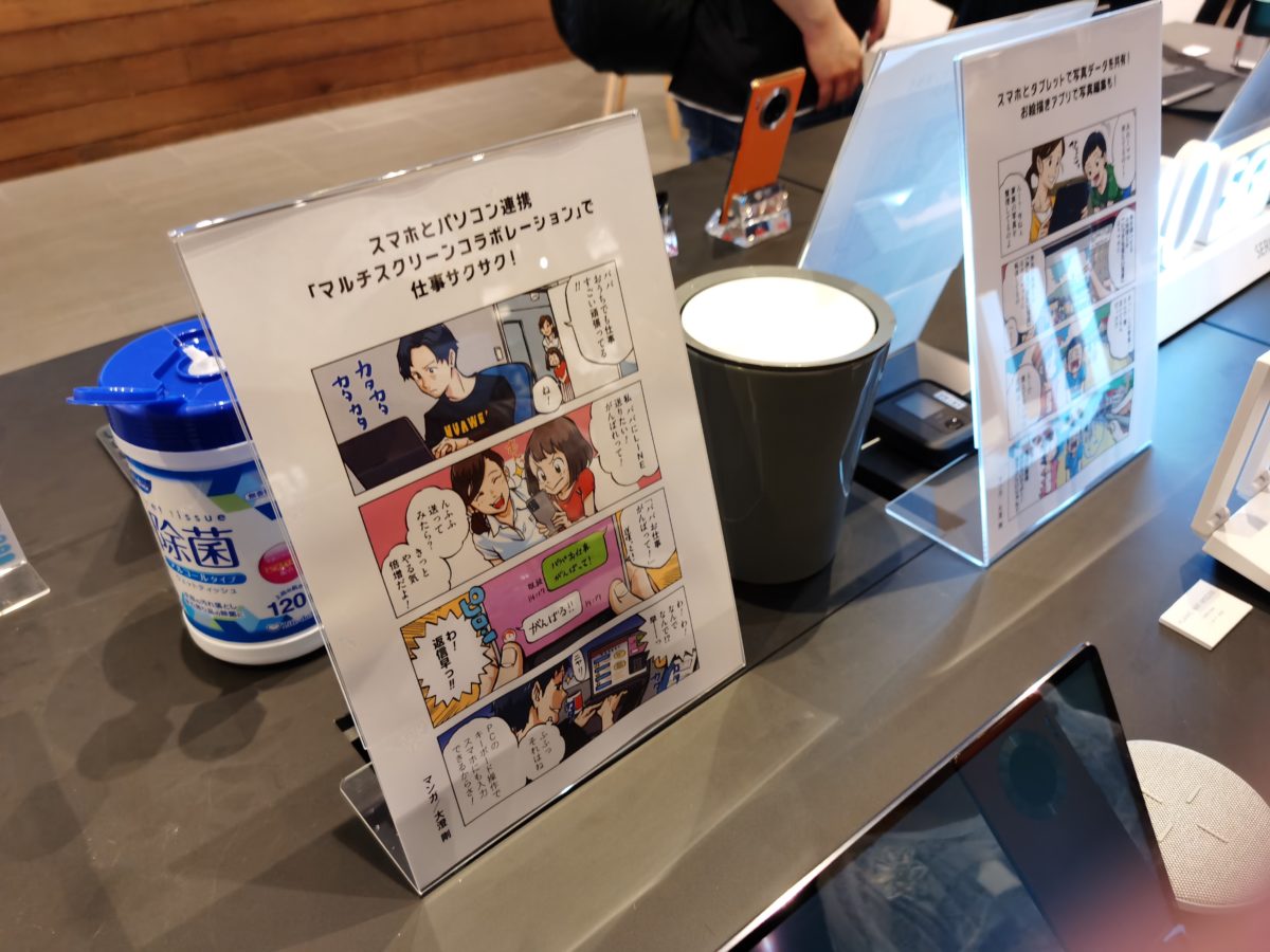 ファーウェイのタブレットとパソコンは、ファーウェイのスマホと組み合わせて使うことで、より利便性が向上するとのこと。しかも、面倒な接続設定は要らず、ほぼワンタッチでペアリングができることも魅力です。会場では、説明員に “スマホとつながる” デモンストレーションを見せてもらうことができました。