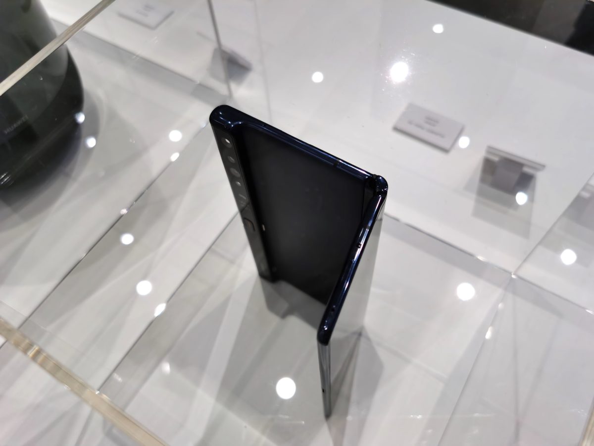 日本では、auがサムスン電子製の「Galaxy Fold」という折りたためるスマートフォンを発売しています。Galaxy Foldは、ディスプレイを谷折りにできる仕組みですが、HUAWEI Mate Xsは8インチの有機ELディスプレイが山折りに曲がります。つまり、折りたたみ時も、広いディスプレイを利用できるわけです。HUAWEI Mate Xsはガラスケースに中に展示されて、来場者は触れることはできなかったのですが、ディスプレイが紙やフィルムのように曲がった状態を見ることができ、その未来感を味わうことができました。