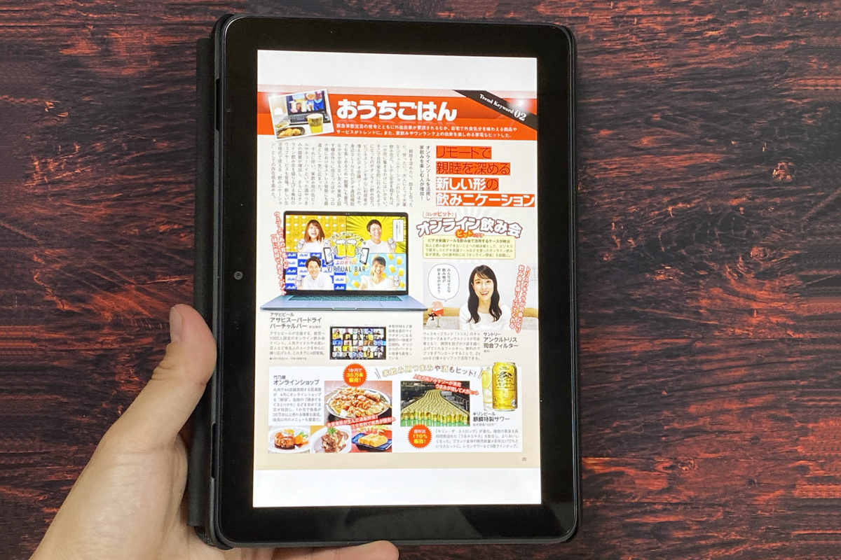 一方で、マンガや雑誌を読むには8インチはちょうど良いサイズ。細かい文字もちゃんと読み取れます。重さはあるため、長時間読んでいると腕の疲れが気になるかもしれません。ケース装着時は実測値で545gと、500mlペットボトル1本分よりも重くなります。