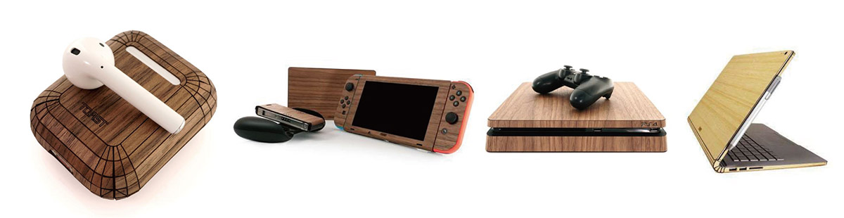そんなときに活用したいのが、本物の木から生まれたアメリカ発のデジタル製品用スキンシート「TOAST」です。TOASTをデジタル製品に貼り付けると、デジタル製品特有の無機質な外観を木目のデザインに変えることができ、本物の木を使ったリアルウッドならではのぬくもりを感じさせる風合いに仕上げることができます。