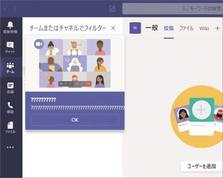 「Microsoft 365」(旧「Office 365」)に組み込まれており、企業単位での導入例も多い。テキストチャットとビデオ会議がともに高機能で、最大接続人数の多さも魅力。