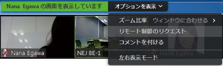 他の参加者にリモート制御をリクエストし、それが許可されると、相手のPCを自分のPCから操作できる。逆に、自分のPCを他の参加者に操作させることも可能。