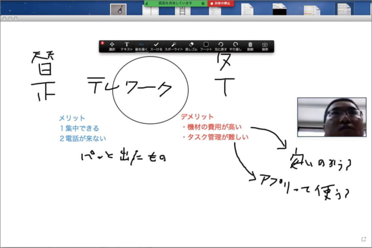 あとは「共有」をクリックすれば、参加者の画面に同じ画面が表示される。「共有の停止」を押すと終了できる。