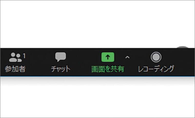 画面内をクリックすると、下部にアイコンが表示される。その中央に位置する「画面の共有」をクリックしよう。