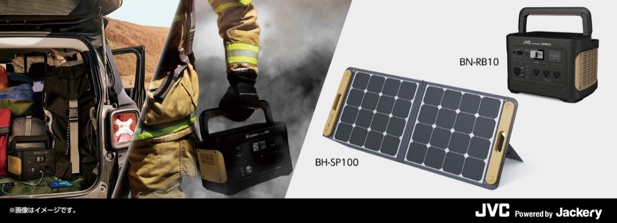 JVCケンウッドは、出力・容量を増強したポータブル電源「BN-RB10」と、太陽光を利用した充電・給電に対応するポータブルソーラーパネル「BH-SP100」の2機種を7月下旬に発売します。