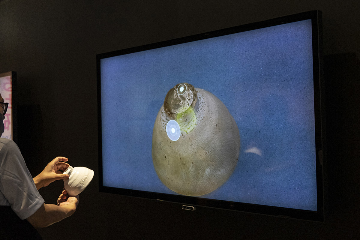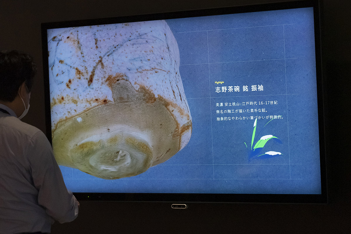 トーハクで陶磁器専門の主任研究員を務める三笠景子さんは「中身について何を伝えたいか、茶碗のどこを見ていただきたいかを我々がシャープさんにお伝えして、共同で制作しました。表面の色の諧調やひび割れなどを細部まで見ることができ、普段、展示品を手に取っている研究員でも、新たな表情を発見する瞬間がありました」と話していました。