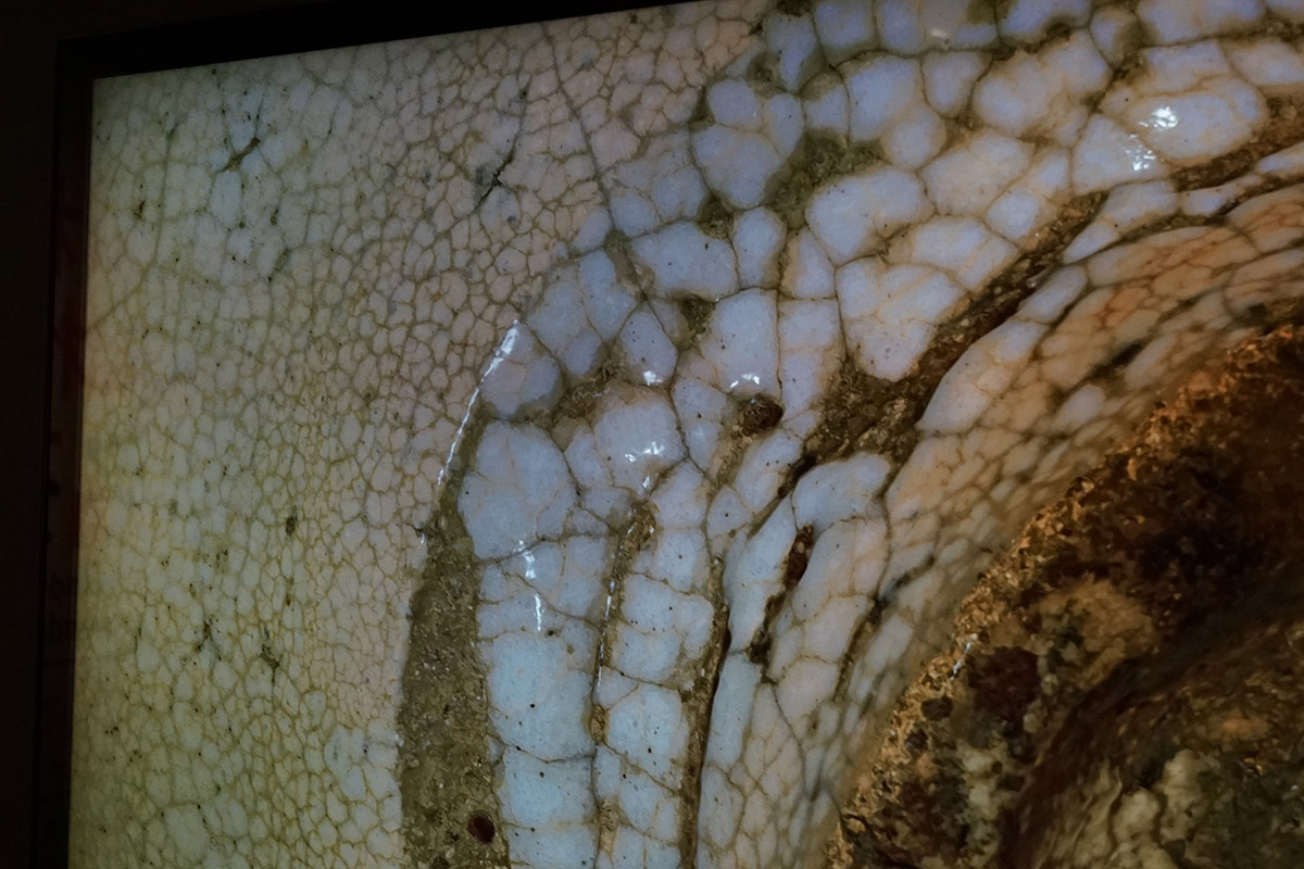 8Kディスプレイでの表示に耐えられるよう、茶器の3Dデータは8Kを上回る16Kの解像度で作成されています。実際に作成するにあたって難しかったのは、茶器ならではの色味の再現。色味の見え方は光の当たり具合によっても違うため、展示室の照明環境にあわせて再現されています。