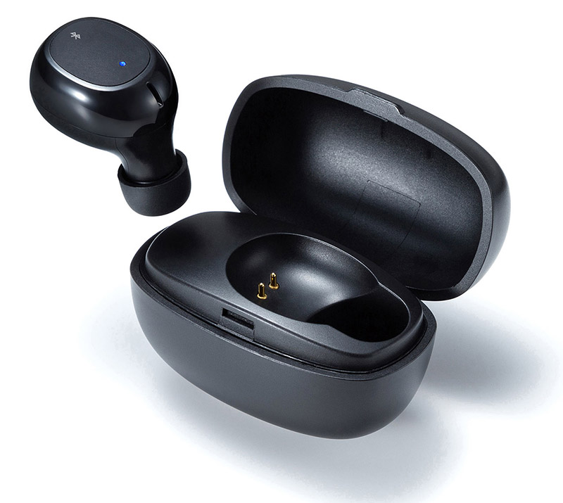 「MM-BTMH52BK」は、超小型・超軽量の完全ワイヤレスイヤホン型の片耳ヘッドセット。Bluetooth接続で音楽が聴けるほか、本体に内蔵されたマイクでハンズフリー通話も可能。ZoomやMicrosoft TeamsなどのWeb会議アプリにも対応しているので、テレワークや在宅勤務での使用に最適です。