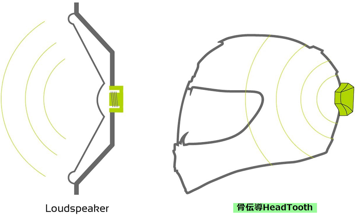 クラウドファンディングサイト「Makuake」でプロジェクト展開中のヘルメット用オーディオデバイス「Headtooth」は、骨伝導技術を応用してヘルメットを振動スピーカーにするというアイテム。本体に内蔵する2つの骨伝導スピーカーによりヘルメットを振動させ、イヤホンをつけなくてもスマートフォンなどからワイヤレス伝送した音声を聴くことができます。