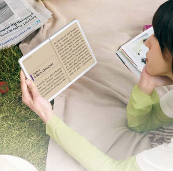 約7.9mm狭ベゼル仕様の10.4型Androidタブレット。アプリの2画面表示に加え、フローティングウィンドウも表示できるマルチウィンドウ機能を搭載。4基のスピーカーと4基のマイクを備え、ノイズを抑えたビデオ会議が行える。
