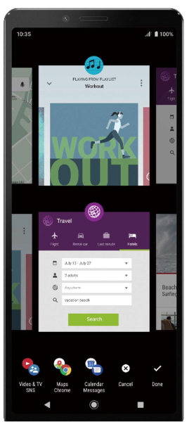 21:9の有機ELディスプレイを搭載したハイスペックな中級機。縦長の画面を生かして、画面を上下に分割する独自のマルチウィンドウ機能を備える。カメラは超広角・標準・望遠のトリプルレンズ仕様で、カメラまかせで高画質に撮影できる。