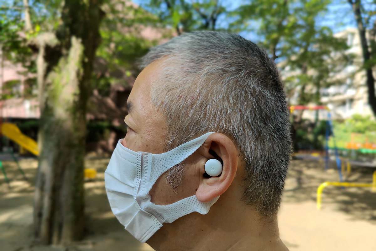 Pixel Budsには、環境音を適度に取り込む空気孔があります。音楽を聴いているときでも周囲の気配がわかる仕組みで、例えば音楽を聴きながら街を歩いていると、セミが鳴く声が静かにザワザワと聞こえたり、車が近づくとその気配がわかったり。しかし、気になる音量ではなく、音楽に環境音がミックスして聞こえるような感じです。