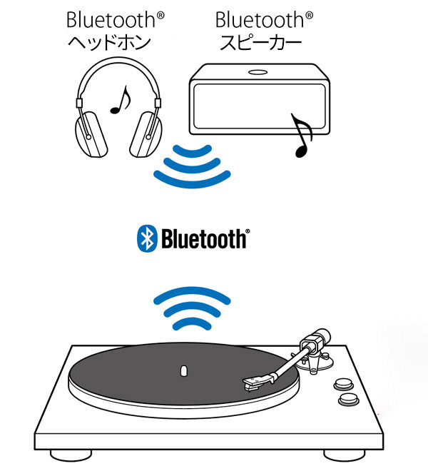 また、Bluetooth機能のあるオーディオシステムと組み合わせれば、ケーブルの配線を気にせず自由に設置することも可能。フォノイコライザーアンプを内蔵しているので、フォノ入力を持たないステレオアンプやミニコンポ、ラジカセなどに出力して音楽を再生できます。