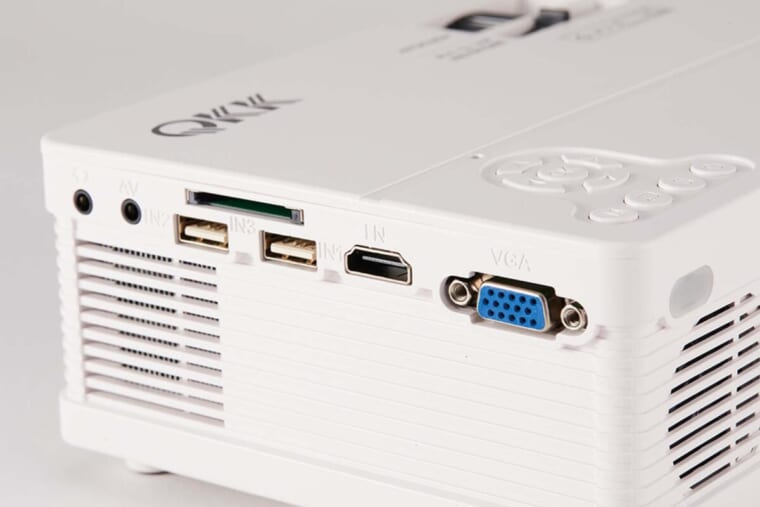 「スクリーンを別途購入しなくていい、という手軽さのほか、入力端子の多彩さ、スピーカー内蔵など、必要十分な装備です。操作ボタンを豊富に備えるのも便利」
