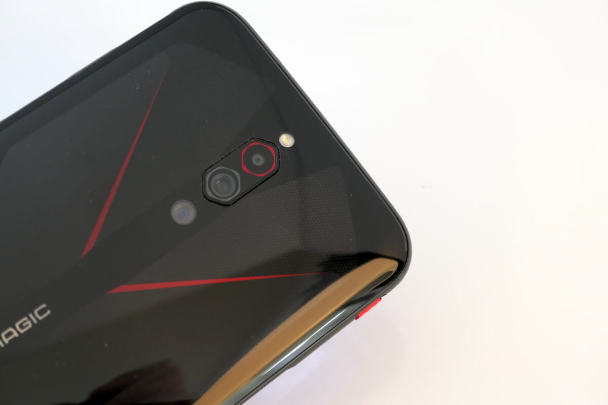 ゲーミングスマホは、ターゲットが絞られているため、“攻めのデザイン” を採用している機種が多いように思います。RedMagic 5は「Hot Rod Red」と「Eclipse Black」の2色があり、筆者は「Eclipse Black」を使っています。背面パネルには、異なる模様を組み合わせた斬新なデザインを採用し、中央に配置したログは点灯し、その色はカスタマイズできます。